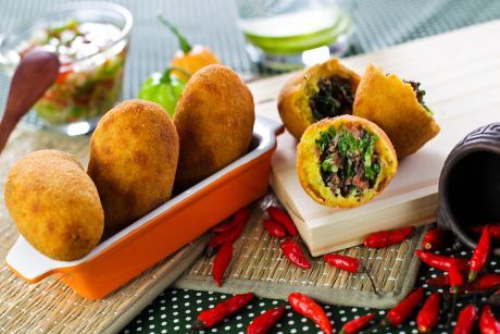 Petisco Doritos: Croquete de carne com Sweet Chili ao molho especial
