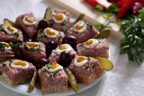Canapé Augusto Tolle (R$ 21)- Feito no pão forma preto com lingüiça defumada de Blumenau