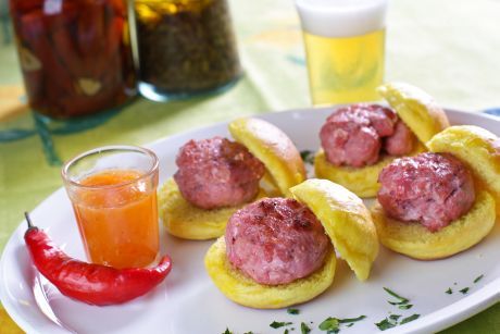 Mini-hamburguer de calabresa Grelhado (R$ 15) - Mini-hamburguer de calabresa Grelhado, acompanha geleia de abacaxi com pimenta